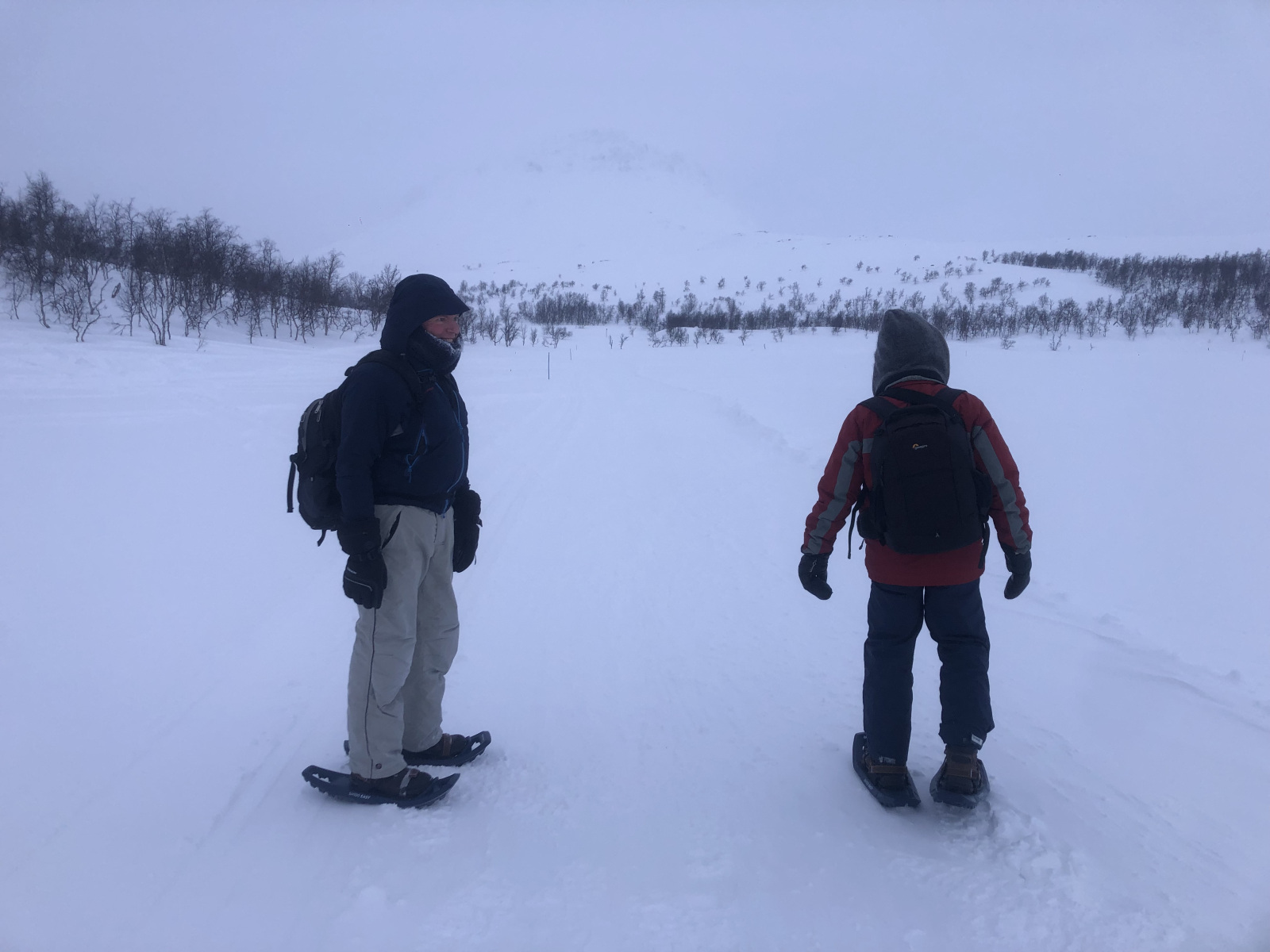 Het avontuur is begonnen!! Alles ging heel voorspoedig, taxi, bagage, security en rond 11:00 stonden we Tromsø. Bij de autoverhuur stonden we wel bijna een uur te wachten doordat een Chinees gezin een auto wilde huren, maar geen woord Engels sprak. Alles moest via Google translate en dat duurde LANG, zeker als je al dat moois ziet wanneer je naar buiten kijkt. We kregen wel een gratis upgrade en hebben nu een heuse 4×4 SUV. Eerste stop was het centrum van Tromsø. Het was er erg toeristisch maar goed, wij lopen daar ook natuurlijk. De straten waren erg glad, hoewel er grind op het ijs is gestrooid blijft het opletten. Met gevaar voor eigen ego bereikten we een hoger gelegen uitzichtspunt en keken we over de stad en het fjord uit met de bergen op de achtergrond. Het werd al donker (15:00) waarna we onze weg naar Kilpisjärvi vervolgden. Het was vrij helder en de temperatuur zakte al naar zo’n -8. Voor morgen wordt tot -25 voorspeld.